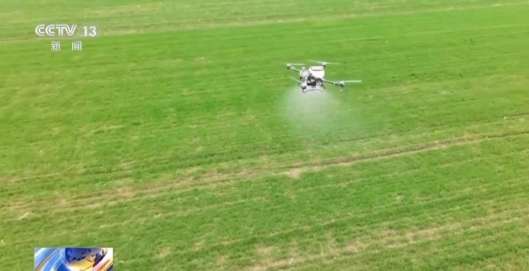 雨后天晴,土壤墒情合适,老袁抓紧铺设滴灌带进行追肥,让小麦吃上“营养餐”,田间的植保无人机也动了起来喷施农药。这些精准细致的田管措施是他多次向农技专家请教得来的。