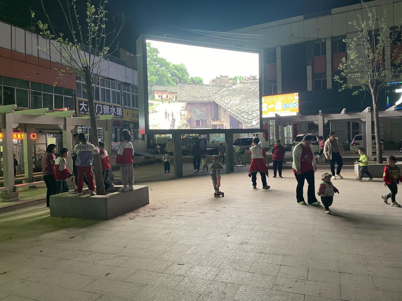 近期,磁窑镇创新惠民形式,利用户外大屏在傍晚黄金时段播放红色电影和动画片,为群众送上 “文化大餐”,让原本静谧的夜晚变得热闹非凡。