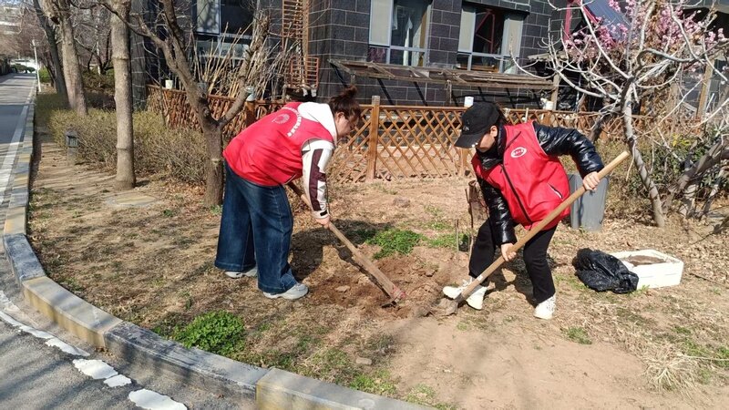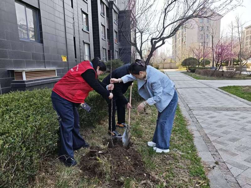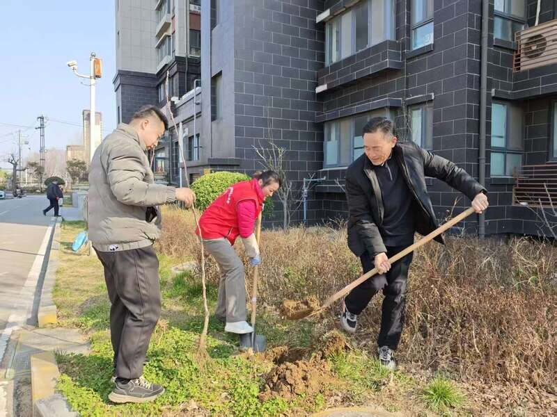党建红引领生态绿,党群同心植新绿。活动当天,雷诺名郡小区一派繁忙景象。社区工作人员提前规划种植区域、准备树苗及铁锹、水桶等工具。党员们冲锋在前,热心骨干积极响应、协同配合,大家分工协作、默契有序,挥锹挖坑、扶苗培土、踩实固根、提水浇灌,每一道工序都认真细致、一丝不苟。春日阳光下,忙碌的身影与嫩绿的新苗相映成景,勾勒出党群同心共建美好家园的生动画面。