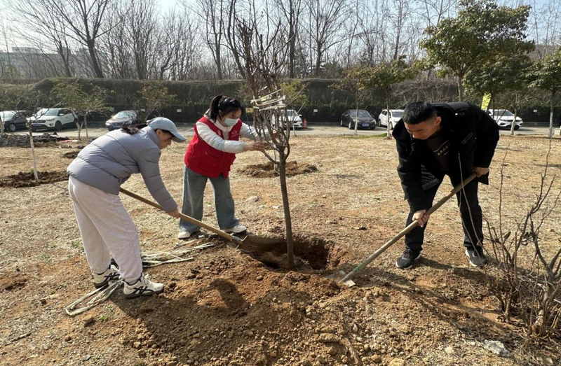 春风拂面,海棠待放。河滨社区联合怡和物业开展的“植此青绿 共筑家园”主题植树活动现场一片忙碌景象,社区工作人员、志愿者与居民朋友热情高涨,三五成组,分工协作。大家或挥锹铲土、扶苗定植,或填土压实、提水浇灌,每道工序有条不紊,经过一番辛勤劳作,新栽种的海棠花树苗在春日暖阳下迎风挺立、错落有致,为社区增添了盎然绿意和勃勃生机。邻里间在劳动中增进情谊,人心在协作中凝聚力量,大家用实际行动为家园添绿,以团结互助诠释着共建美好社区的深厚情谊。
