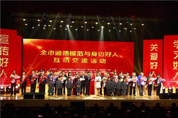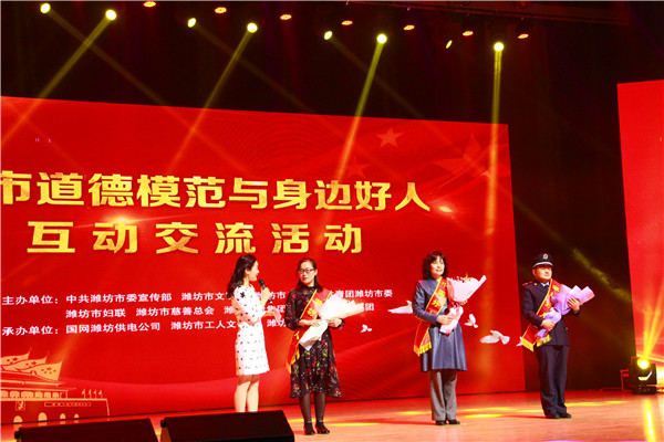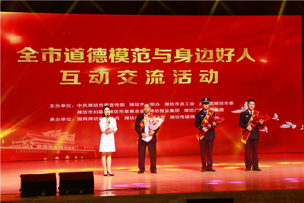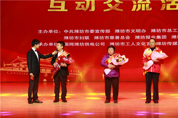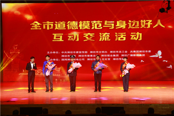 鲁网潍坊3月6日讯 3月4日,由中共潍坊市委宣传部、市文明办、市总工会、团市委、市妇联、市慈善总会、潍坊报业集团、潍坊广播影视集团共同主办,国网潍坊供电公司、潍坊市工人文化宫、潍坊传媒网承办的潍坊市道德模范与身边好人互动交流活动举行。来自我市各行各业的中国好人、山东好人、潍坊好人代表,以及全市社会各界党员干部群众代表1000余人参加了活动。