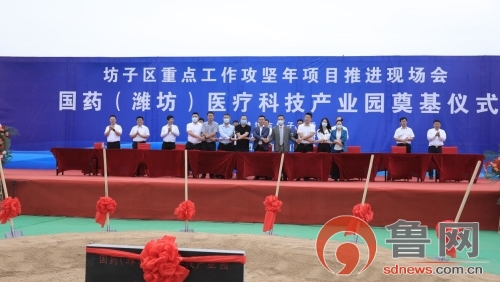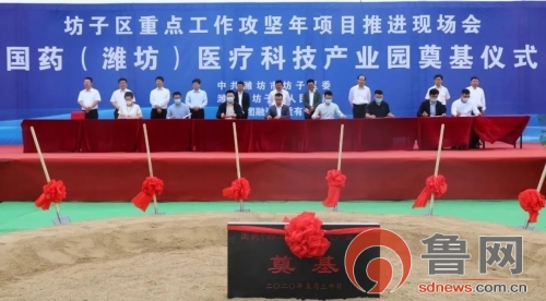 鲁网6月2日讯 2020年5月30日上午,国药(潍坊)医疗科技产业园奠基仪式在潍坊市坊子区隆重举行,区领导扈洪波、潘振东、王希慧、张逢春、高凤金、张新明,以及区直有关部门(单位)、各街道(发展区)、项目方负责人出席仪式。坊子区委副书记、区长张龙江主持仪式,坊子区委书记扈洪波致辞,国药集团融资租赁有限公司总裁王国梁致辞。产业园负责人介绍,该产业园占地面积约500亩,总投资约20亿元,预计三年内招引及孵化企业可达120家以上。