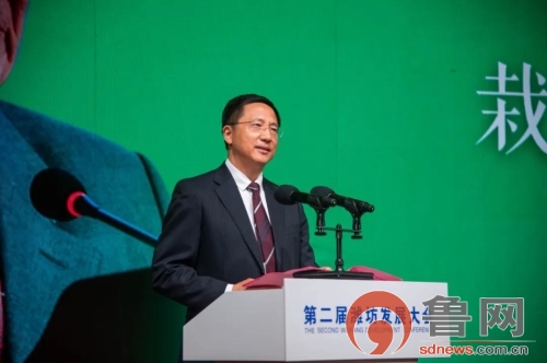 (潍坊市市委书记、市人大常委会主任惠新安发表主旨演讲)
