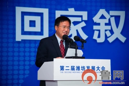 惠新安在主旨演讲时首先代表市委、市政府和935万潍坊人民向长期以来关心支持潍坊发展的各位领导、老乡、嘉宾、朋友表示最热烈的欢迎和衷心的感谢,并向海内外所有潍坊人和在潍坊兴业发展的朋友致以亲人的问候。