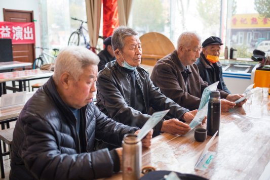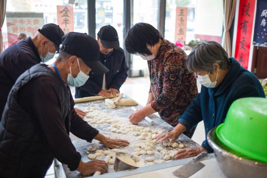 (免费大食堂吃饭前 就餐的老人会诵读感恩词)