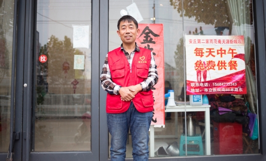 “其实做公益最主要的就是先做,后面的问题慢慢就解决了。比如我们安丘这十个大食堂,房子都是大家捐献的,包括我们这个店也是房地产公司的售楼处改装的,大家伙的热情上来了,你捐个菜,我捐点钱,他捐点衣服的,事情就可以做了。”李鹏程对记者说。
