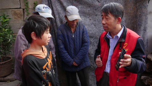 (2022年12月 李鹏程在对爱心人士资助的孩子进行视频通话并给予600元慰问金)