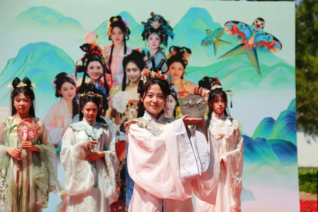 活动通过多维文化叙事重构传统节日内涵。花神走秀以飘逸华服演绎东方美学,"衣袂潍风,锦绣霓裳非遗大赏"聚焦鲁绣、核雕、风筝等非遗技艺,通过作品陈列、现场展演,将千年衣冠文化与民间艺术传承娓娓道来;花枝授予仪式传递天人合一理念,国风歌曲以现代旋律吟唱古韵,汉服舞蹈翩跹间重现古典雅态,京剧表演用程式之美诉说历史故事,古筝古琴的丝弦之音流淌东方雅韵。诗乐舞与非遗技艺交相辉映,以现代艺术诠释传统精髓,让传统文化焕发全新生命力。系列活动吸引线上线下超万人次参与,全网话题阅读量突破10万次,成为传统文化创造性转化的生动实践。