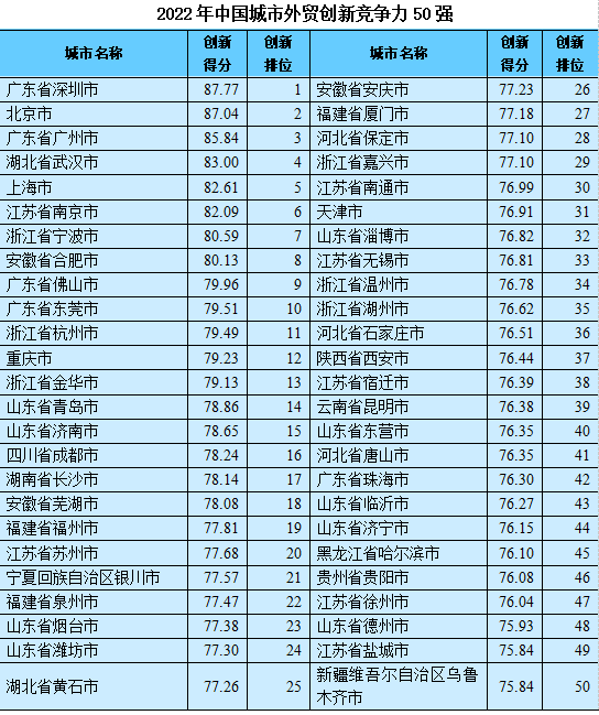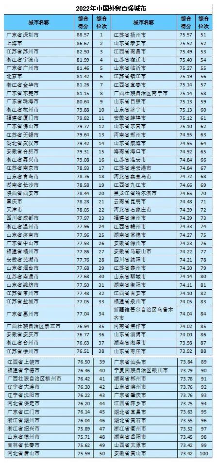 近日,《中国海关》杂志发布了2022年中国城市外贸竞争力报告。报告显示,山东青岛、济南、烟台、潍坊、德州、泰安、临沂、日照、济宁、东营、威海、聊城、淄博、枣庄、滨州15市入选2022年中国外贸百强城市榜单。