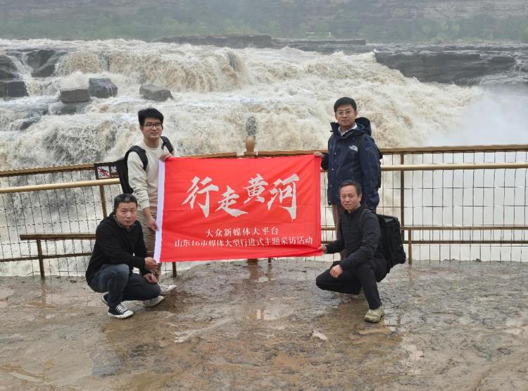 “行走黄河”记者在陕西延安壶口瀑布采访拍摄。(□记者 孙源泽 供图)