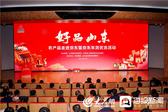 1月2日,由山东省农业农村厅、山东省人民政府驻北京办事处主办,京东集团、山东省互联网传媒集团承办的“好品山东”农产品走进京东暨京东年货优选活动在北京京东集团总部举办。来自山东的120余家农产品品牌企业200余种品牌农产品组团北上,进一步开拓“好品山东”品牌农产品市场,解锁山东优质农产品对外推介渠道。
