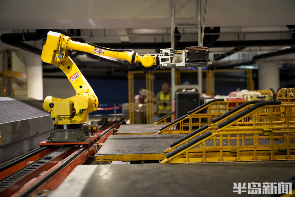 依托5G技术,青岛机场自主研发的L4级车路协同无人驾驶系统,孵化出了行业首款无人驱鸟车、无人割草机,这个项目还荣获了第四届上合组织国家青年创新创业大赛第一名,被《人民日报》点赞为全球智慧交通建设的“中国方案”。此外,青岛机场与中国航信还携手部署了全球首个民航转运场景全向叉取转运智能机器人,能适配各种行李转运场景,每小时能精准叉取、搬运行李180件。