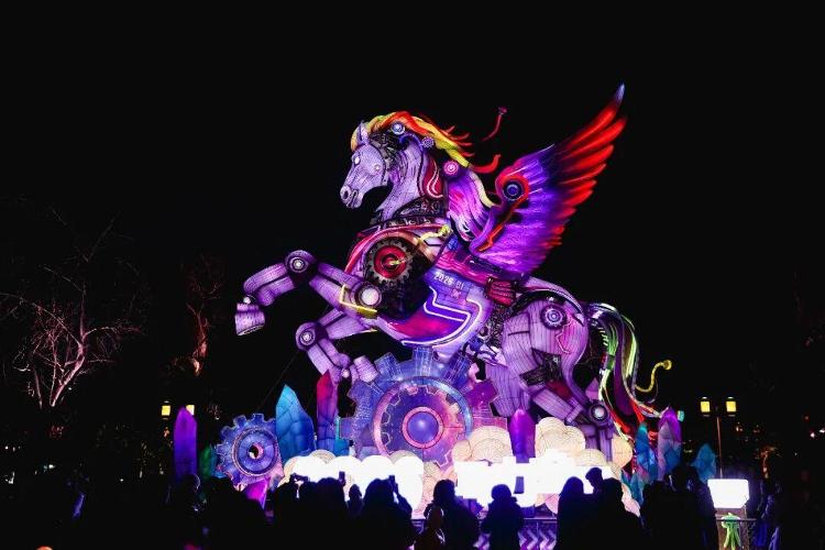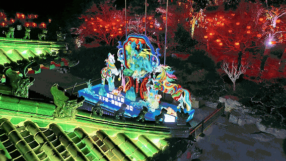 作为本届灯会的核心展区,趵突泉景区分为《南门贺岁·悦马泉城》与《文脉流光·诗咏名泉》两大篇章,深度挖掘济南历史人文与泉水文化,打造兼具民俗气息与文人意趣的赏灯核心区。