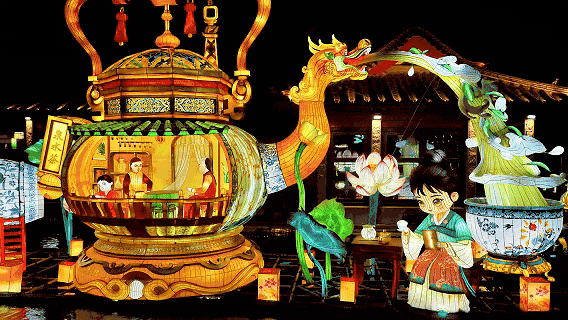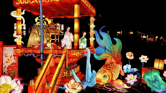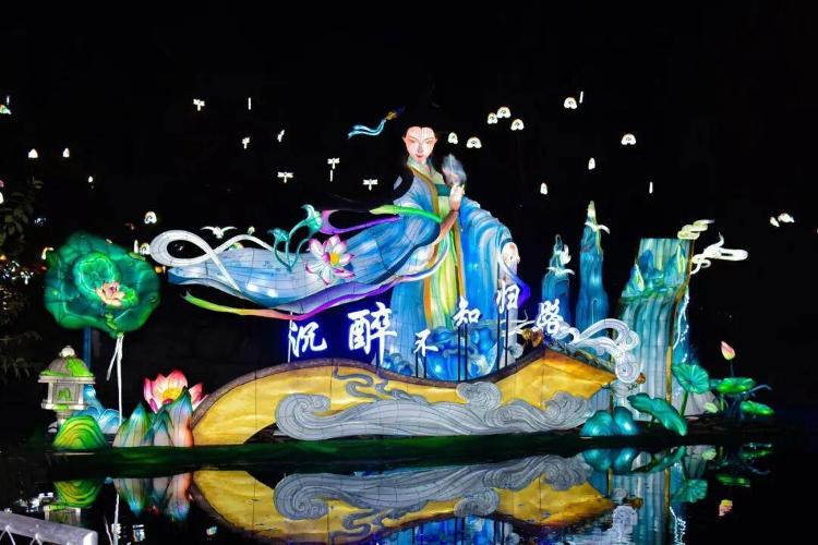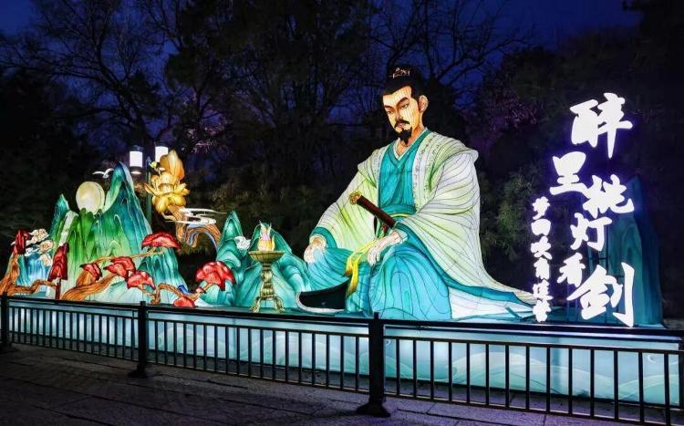 《荷间醉梦》灯组还原李清照“沉醉不知归路”的诗词意境,《剑挑灯华》以“醉里挑灯看剑”为核心,展现辛弃疾的壮志豪情。作为济南的文化名片,“二安”承载着济南的文人风骨与家国情怀,是济南名士文化的核心代表。本届灯会将“二安”作为重磅嘉宾,打造专属主题灯组,让两位文人雅士“穿越千年,隔水相望”,在灯火中与当代人相遇。