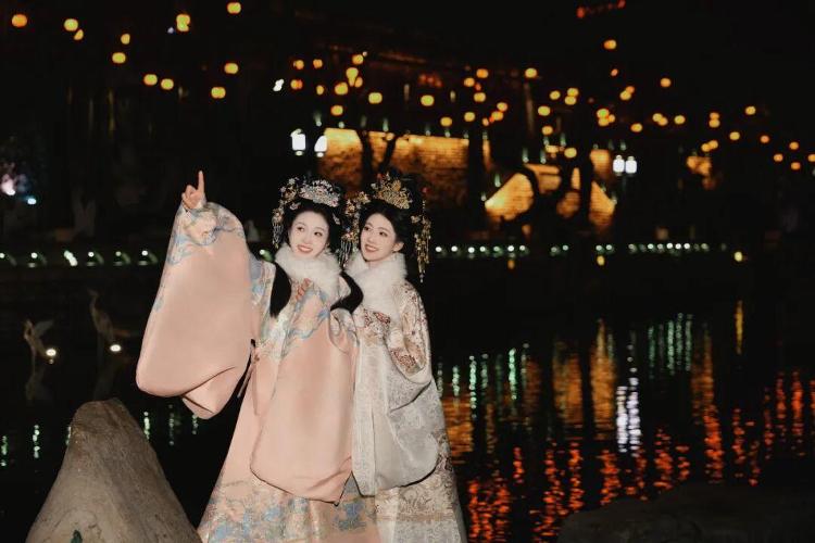 摩肩接踵的游客中,既有全家出游的温馨身影,也有身着汉服的年轻打卡者。灯火与泉水相映成趣,勾勒出“灯在水里闪,泉在灯中流”的绝美画卷。