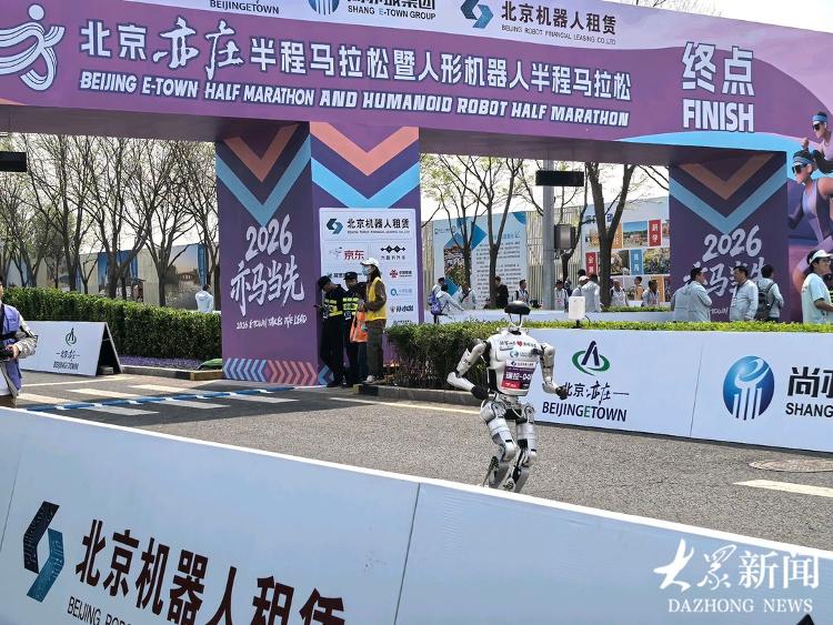 4月19日上午,2026人形机器人半程马拉松赛鸣枪开跑。来自山东的人形机器人“行者泰山”首次参赛,便以稳健表现顺利跑完21.0975公里,成功完赛。