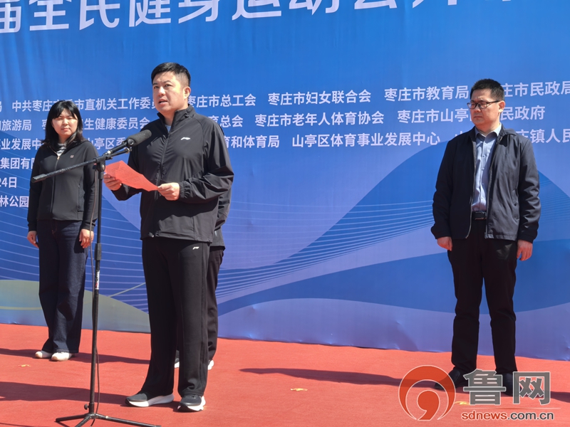 开幕式上,山亭区委副书记苏伟致欢迎辞,向各位领导、嘉宾及参赛选手的到来表示热烈欢迎。随后,市体育局局长林捷宣布枣庄市第十六届全民健身运动会开幕。主席台领导共同移步发令区,为比赛鸣笛发令。