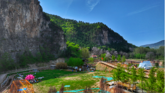 线路的第一站是有着“北方小九寨沟”美誉的锦绣许村景区,这里自然风光独绝,青山环抱、碧水潺潺,五彩池波光潋滟,溪水与山林相映成趣。“陈毅元帅拴马槐”承载红色记忆,漫宋古街延续民俗风情,百亩银杏林沉淀岁月韵味。另有玻璃栈道、观光竹筏、喊泉等特色体验设施,以及星空露营草坪、沙滩游乐园等休闲场地,让你沉浸式感受田园慢生活的诗意与治愈。